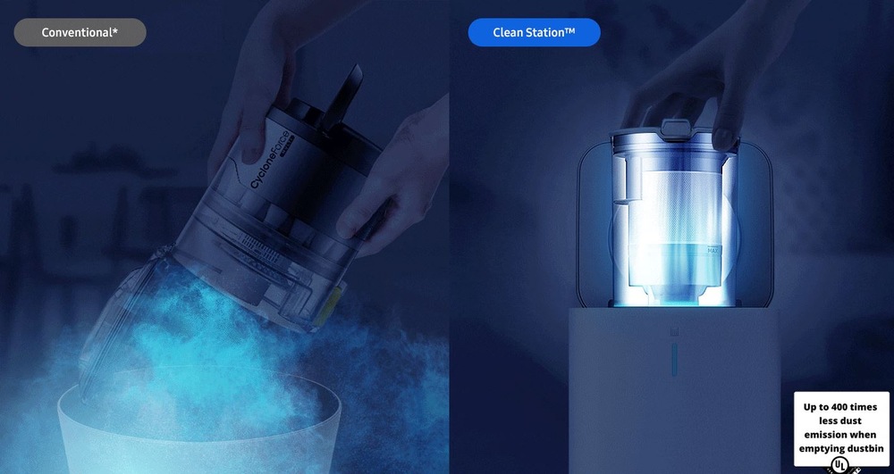 Vysýpací stanice má vzduchotěsnou konstrukci, což zabraňuje tomu, aby se i ten nejjemnější prach rozptýlil zpět do vzduchu. V porovnání s běžnými prachovými nádobami je až 400× hygieničtější.