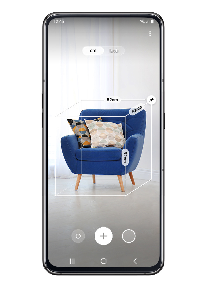 Galaxy A80 bude vaším věrným společníkem i v praktických sférách života. Přichází totiž s aplikací rychlého měření, která vám pomůže například vybavit interiér vašeho bytu. Umožní vám telefonem skenovat a následně změřit šířku, výšku a hloubku 3D objektů.