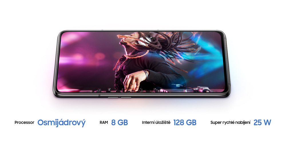 Úžasné funkce, skvělý design… Tím to však nekončí. Dechberoucí výkony podává Galaxy A80 hlavně díky jeho osmijádrovému procesoru a 8GB RAM. Tato kombinace mu umožňuje za každých okolností fungovat naplno. K tomu přispívá také baterie s typickou kapacitou 3 700 mAh a technologie 25W rychlého nabíjení, která ho v případě vybití okamžitě postaví na nohy.