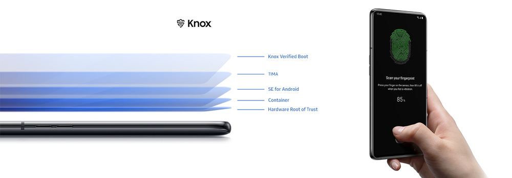 Mějte svoje data a citlivé informace vždy bezpečně ukryté. Galaxy A80 vám dává možnost odemknout telefon pomocí vašeho otisku prstu. Jeho čtečka je ukrytá přímo v displeji zařízení a zaručí, že se k důležitému obsahu nedostane nikdo, pouze vy. Smartphone je však chráněný i na softwarové úrovni. Bezpečnostní platforma Samsung Knox poskytuje spolehlivou ochranu hned na několika úrovních.