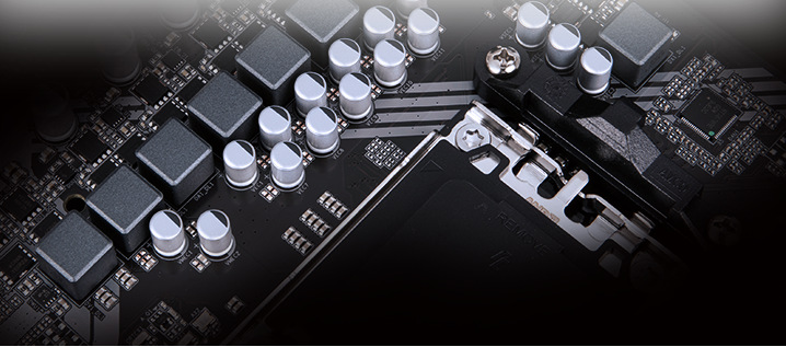 Kvalitní audio kondenzátory doplněné o oddělené analogové audio obvody zajišťují čistý a detailní zvuk bez rušení z ostatních částí desky.