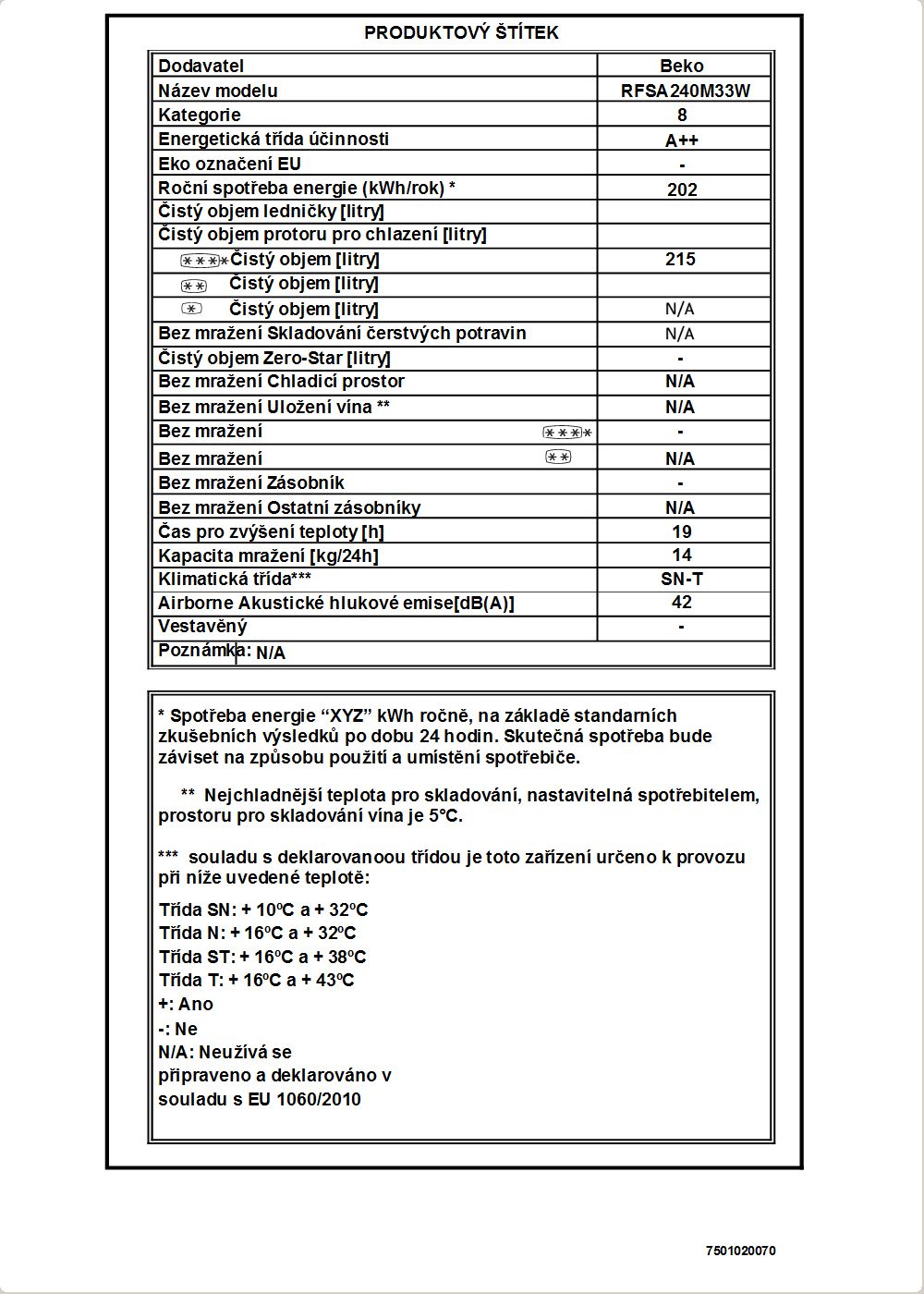 | Odhadované náklady mrazení za 1 rok | 1414 Kč |