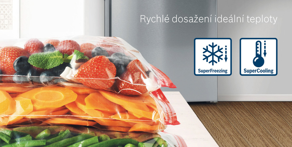 Aktivací funkce SuperChlazení / SuperMrazení, dojde k velmi rychlému vychlazení, nebo zmrazení potravin, které byly právě zakoupeny. Zároveň tato funkce zabrání ohřívání potravin, které již v chladničce a v mrazničce jsou. To znamená delší trvanlivost.