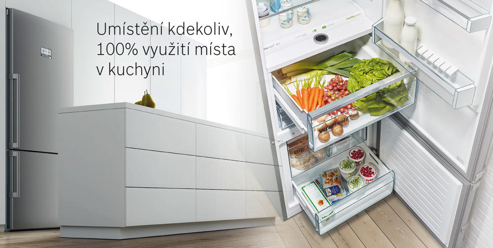 Chladničku s technologii Perfect Fit můžete umístit úplně kamkoli. K boční zdi nebo přímo k nábytku – již nejste limitováni nedostatkem místa. Chcete využít prostor ve své kuchyňské lince a nestojíte o vestavnou chladničku? Pak je volně stojící chladnička Bosch s Perfect Fit pro Vás to pravé.