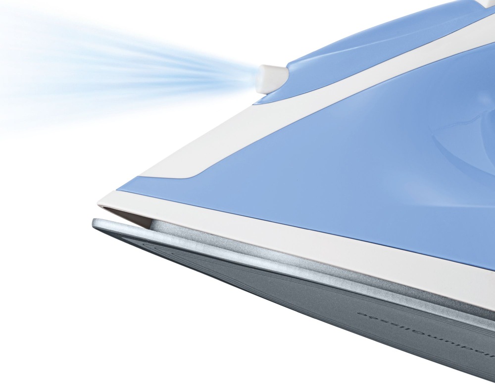 Kvalitní žehlicí plocha Palladiun-glissée klouže po látkách jako po másle a zanechává je rovné jako prkno. S příkonem 1 300 W dojde po zapojení do elektřiny k rychlému zahřátí, přičemž teplotu si snadno regulujete otočným knoflíkem, aby nedošlo například ke spálení velmi jemných tkanin. Snadno se dostanete i do těžko dostupných míst, například na límeček nebo mezi knoflíky, a to za pomoci speciálně tvarované špičky.