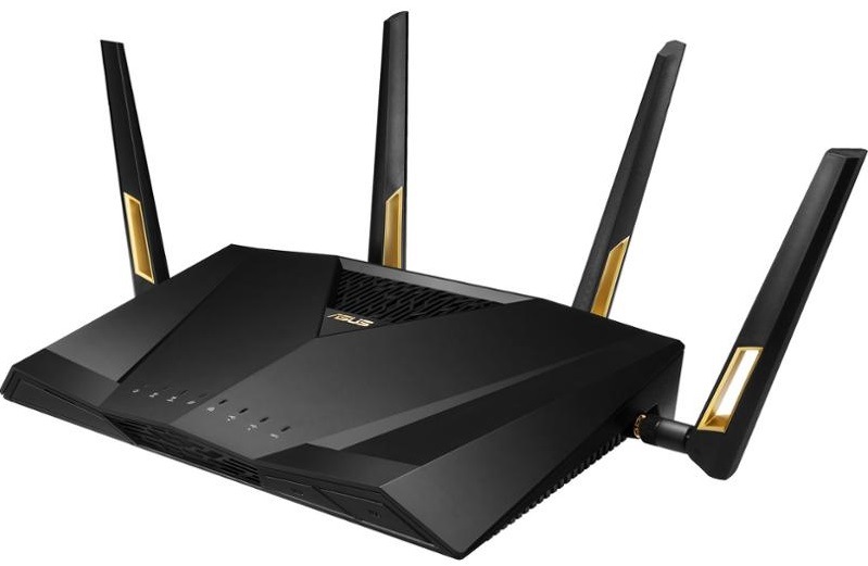 dvoupásmový router • standard Wi-Fi 6 (802.11ax) • rychlost 6 000 Mb/s • 4 antény • 8 LAN portů • zabezpečení AiProtection Pro • kompatibilní se systémem ASUS AiMesh
