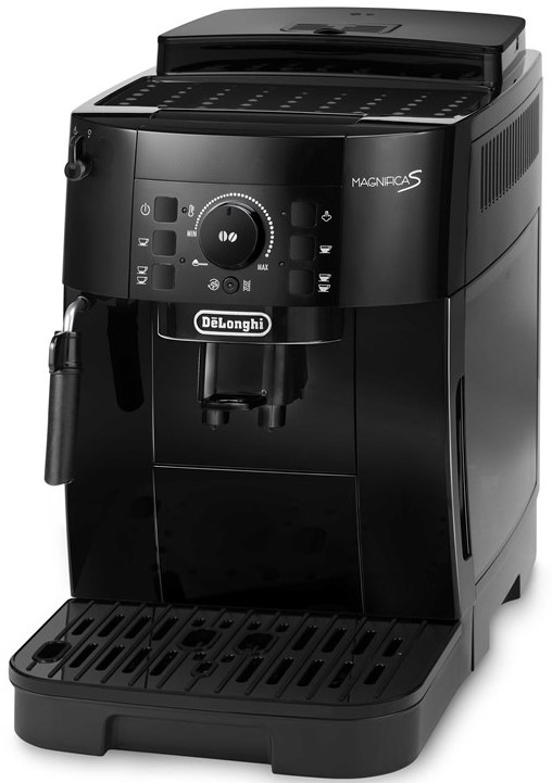 Automatický kávovar De'Longhi ECAM 12.121.B Magnifica S, který nabízí profesionální přípravu s důrazem na chuť a bohaté aroma, vám připraví kávu tak, jak ji máte rádi. Kávovar s příkonem 1 450 W a vysokým tlakem čerpadla 15 barů je zárukou dokonalé chuti. Lze ho použít s kávovými zrny nebo s již namletou kávou. Potěší vás elegantní štíhlou konstrukcí s minimalistickými tvary, kvalitním zpracováním, jednoduchou obsluhou a nenáročnou údržbou. Na výslednou chuť kávy mají vliv nejen dokonale namletá kávová zrna, ale také jejich kvalita a spařování. Proto je kávovar vybaven kvalitním ocelovým mlýnkem, topným tělesem Termoblok a funkcí předspaření. S klasickým napěňovačem můžete během chvilky obohatit šálek kávy krémovou vrstvou jemné mléčné pěny a vychutnat si cappuccino, flat white nebo latté. Ve výbavě zařízení je také automatická čisticí a odvápňovací funkce, která se postará o bezchybný a dlouhodobý provoz spotřebiče. Využít můžete také vodní filtr, který zlepšuje kvalitu vody a zpomaluje proces tvoření vodního kamene.