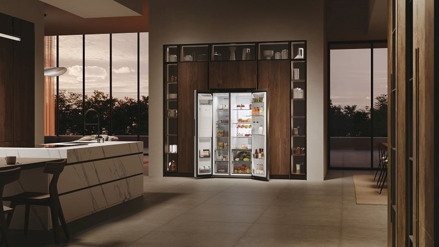 americká chladnička • výška 177,5 cm • objem chladničky 391 l / mrazničky 210 l • energetická třída C • 20 let záruka na kompresor • panel Multi Air Flow – umožňuje aktivní cirkulaci vzduchu • technologie Total No Frost – automatické odmrazování • zásuvka Humidity Zone – přímo určená pro ovoce a zeleninu • filtr HCS v zásuvce Humidity Zone pro udržení 90% vlhkosti a zachování čerstvosti potravin • automatický výrobník ledu • dotykový displej • připojení Wi-Fi, komunikace s mobilem • uhlíkový filtr se snadným přístupem v lednici pro připojení na přívod vody • osvětlení LED Daylight s postupným rozsvěcením a imitací denního světla • panty dvířek se systémem Auto Stop 90° • hlučnost 35 dB • V × Š × H: 177,5 × 90 × 72,6 cm