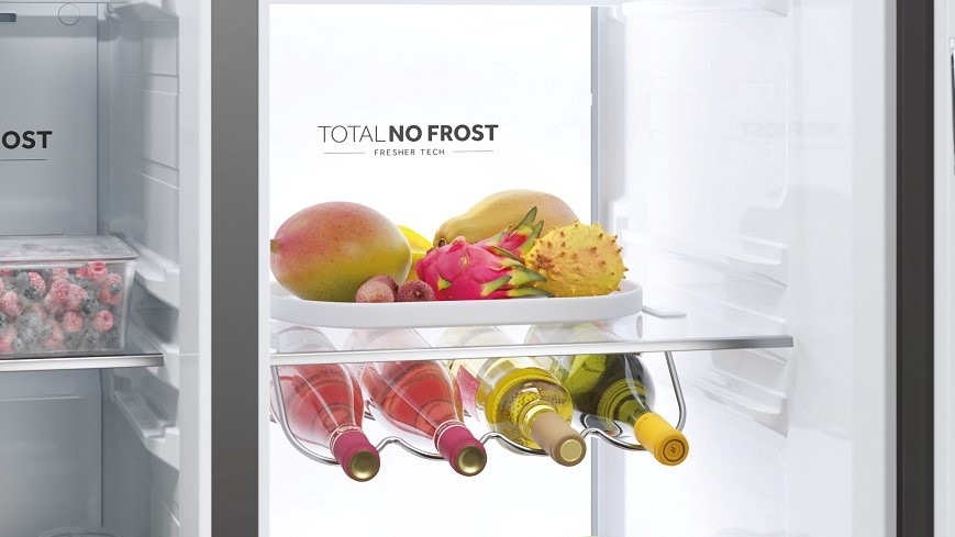 Díky této inovativní technologii se vám uvnitř chladničky i mrazáku už nikdy nevytvoří nepříjemná námraza, což nejenže udržuje vaše potraviny v optimálním stavu, ale také minimalizuje energetickou spotřebu. S Total No Frost se váš chladnička nejen stane bezproblémovým a spolehlivým spotřebičem, ale také ušetří váš čas a energii, kterou byste jinak vynakládali na nepohodlné odmrazování. Nyní můžete naplno využívat vnitřní prostor své lednice a mrazáku a v klidu si užívat čerstvé potraviny bez jakýchkoli kompromisů.