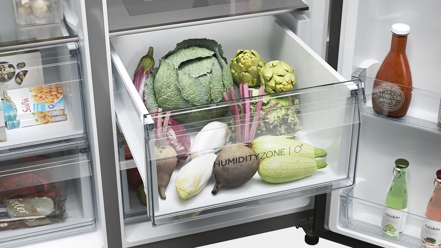 Díky inovativní zásuvce Humidity Zone ve chladícím prostoru naše chladnička zajistí optimální prostředí pro vaše ovoce a zeleninu, udržující 90% úroveň vlhkosti prostřednictvím organické membrány. Tato technologie nejenže udržuje správnou úroveň vlhkosti, ale zároveň umožňuje volný oběh chladného vzduchu, což zabraňuje kondenzaci a zajistí, že vaše potraviny zůstanou čerstvé a plné živin po delší dobu. S naší chladničkou si můžete být jisti, že vaše ovoce a zelenina budou vždy v optimálním stavu.