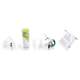 ultrazvukový inhalátor • rozprašovací výkon 0,25 ml/min • pro vybrané typy léčiv a olejů • vhodný pro domácí použití • úložný prostor pro příslušenství • velikost inhalovaných částeček 4,8 µm • 2 masky – pro děti a dospělé • odpovídá normám EU • 15 × 11,6 × 9,7 cm • provoz 2× AA baterie • kompaktní, lehký a přenosný