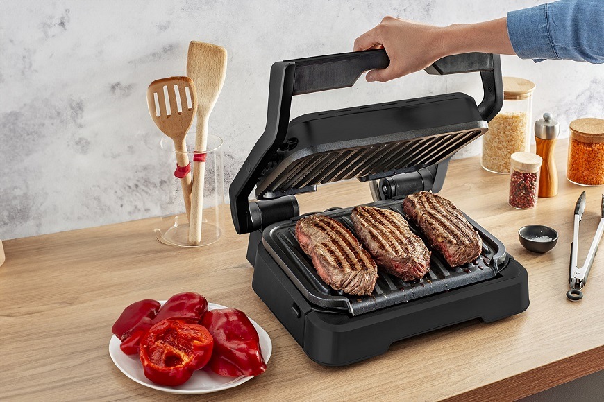 OptiGrill automaticky měří tloušťku grilovaných surovin, počítá množství a dle naměřených hodnot upraví dobu přípravy. Ochutnejte šťavnaté steaky, které jsou krvavé nebo propečené.