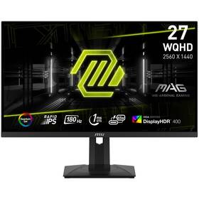 monitor • 27" úhlopříčka • IPS panel, rovný • 2560 × 1440 px • poměr stran 16 : 9 • obnovovací frekvence 180 Hz • jas 400 nitů • odezva 1 ms (GTG) • pozorovací úhly 178° • kontrastní poměr 1 000 : 1 • dynamický kontrast 100 000 000 : 1 • technologie G-SYNC Compatible, Anti-Flicker, MSI Less Blue Light, Night Vision • 2× HDMI 2.0b, 1× DisplayPort 1.4a, 1× USB-C, 2× USB 2.0, 1× USB-B, 1× sluchátkový výstup • VESA 100 × 100 mm uchycení na zeď, nastavitelný úhel otáčení a náklonu, nastavitelná výška, funkce pivot • spotřeba energie 32 W