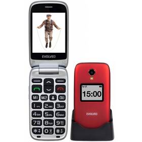 EVOLVEO EasyPhone FP, vyklápěcí mobilní telefon 2.8'' pro seniory s nabíjecím stojánkem (červená barva) Vyklápěcí konstrukce s velkými tlačítky, barevný displej 2.8'' a stále zapnutý přídavný displej, SOS tlačítko s pokročilou lokalizací polohy, SOS senzor pádu, fotoaparát 3.0Mpx s bleskem, FM rádio, Fotokontakty, MMS, Bluetooth, microSDHC, výkonná svítilna, nabíjecí kolébka