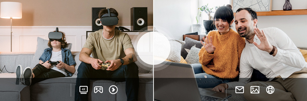 Práce ve dvou pásmech umožní routeru připojit až 64 bezdrátových zařízení, aniž by docházelo ke zpomalování rychlosti nebo snižování výkonu. Vyšší 5GHz pásmo s rychlostí 867 Mb/s je ideální pro Smart TV či herní konzole. Nižší 2,4GHz pásmo s rychlostí 300 Mb/s bohatě vystačí pro vyřizování korespondence, prohlížení obrázků nebo procházení webových stránek.