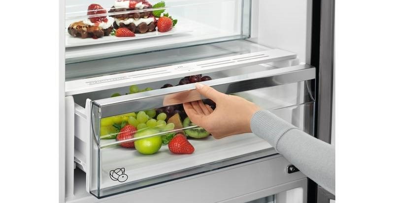 Chladicí systém TwinTech® No Frost je účinnější než systém s jedním výparníkem. Potraviny mají ideální hydrataci a vydrží déle čerstvé a svěží, jelikož chladnička nečerpá suchý vzduch z mrazničky.