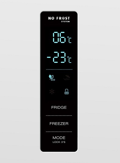 beznámrazová chladnička s mrazákem • výška 195 cm • objem chladničky 243 l / mrazničky 104 l • energetická třída C • ocenění dTest • 5 let záruka na kompresor • elektronický displej • přednastavené režimy ECO / SUPER MRAZENÍ / DOVOLENÁ • NO FROST s technologií ADAPT+ • LED displej • povrchová úprava proti otiskům prstů • výškově stavitelné nožky • možnost změny směru otevírání dveří • hlučnost 39 dB • V × Š × H: 195,0 × 60,0 × 68,5 cm