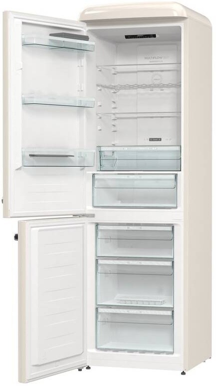 Chladnička s mrazničkou Gorenje Retro ONRK619DC-L je vybavena technologií IonAir a systémem proudění vzduchu MultiFlow 360°, které umožní potravinám udržet si delší čerstvost. Tento volně stojící kombinovaný spotřebič o výšce 194 cm je vybaven invertorovým kompresorem a řadí se do třídy energetické účinnosti D se spotřebou 192 kWh za rok a hlučností nepřesahující 37 dB. Nastavovat funkce i teplotu uvnitř chladničky umožňuje elektronické ovládání a LED displej. Vnitřní LED pás spotřebovává málo energie a má výrazně delší životnost.