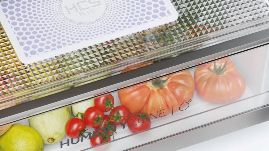 I potraviny, které si kolem sebe potřebují udržet vlhké prostředí, musí mít v chladničce své místo. Pro skladování ovoce, zeleniny či čerstvých salátů nabízí chladnička Haier speciální zásuvku Humidity Zone s HCS filtrem na horní stěně této zásuvky, který konstantně udržuje vlhkost do 90 % pro déle čerstvé potraviny.