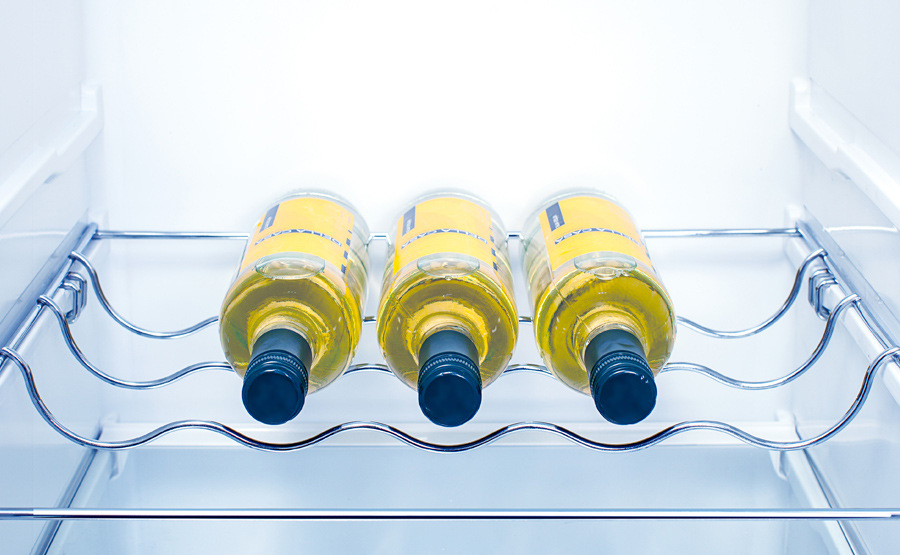 Základním vybavením chladničky je i stojan na lahve. Jde o praktický prostor, který je věnován výhradně vínům a lihovinám podávaným za studena. Ušetřete místo v bočních poličkách a zabraňte posouvání lahví na policích, aby nehrozilo jejich rozbití.