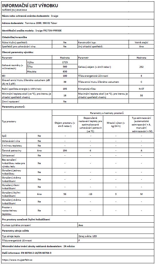 volně stojící chladnička s mrazákem • výška 157,1 cm • objem chladničky 219 l / mrazničky 52 l • energetická třída E • 10 let záruka na kompresor • DuoCooling – nezávislé chlazení oddělených prostor • SmartFrost – snížení tvorby námrazy • průhledné přihrádky na zeleninu a ovoce • možnost změny směru otevírání dveří • max. hlučnost 37 dB • V × Š × H: 157,1 × 55 × 63 cm
