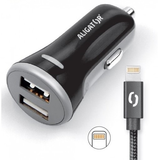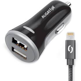 Adaptér do auta Aligator 2xUSB, smart IC, 3,4A + Lightning kabel (CHS0007) černý