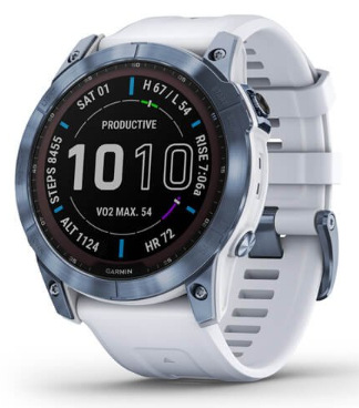 Garmin fenix 7X Sapphire Solar, modrá, bílý silikonový náramek