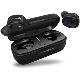 špunty do uší • bezdrátový provoz • Bluetooth • dosah 10 m • nabíjecí pouzdro v balení • přehrávání 5 hod nebo 25 hod s pouzdrem • funkce handsfree • odolnost proti potu a stříkající vodě • automatické párování s telefonem • automatické vypnutí a nabíjení při vložení do pouzdra • frekvence 20 až 20 000 Hz • citlivost 89 dB • impedance 16 ohmů