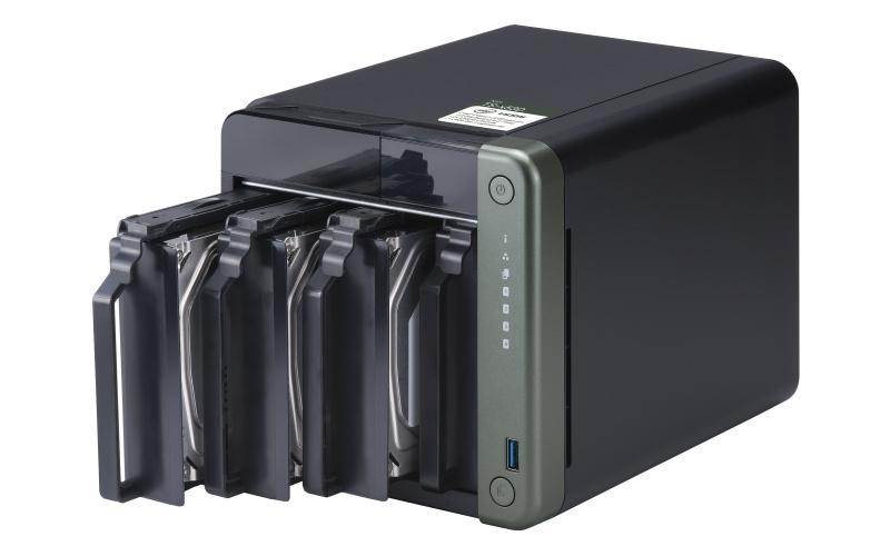 datové úložiště (NAS) • pro 2,5" i 3,5" disky • pozice pro diskové jednotky: 4× 3,5" SATA 6 Gb/s, 3 Gb/s • 4jádrový procesor Intel Celeron J4125 • grafika Intel HD 600 • 4 GB RAM • Slot PCIe 2.0 • podpora akcelerace SSD cache • disky vyměnitelné za provozu • 2,5Gb ethernet port • HDMI 2.0 • 3× USB 2.0 • 2× USB 3.2