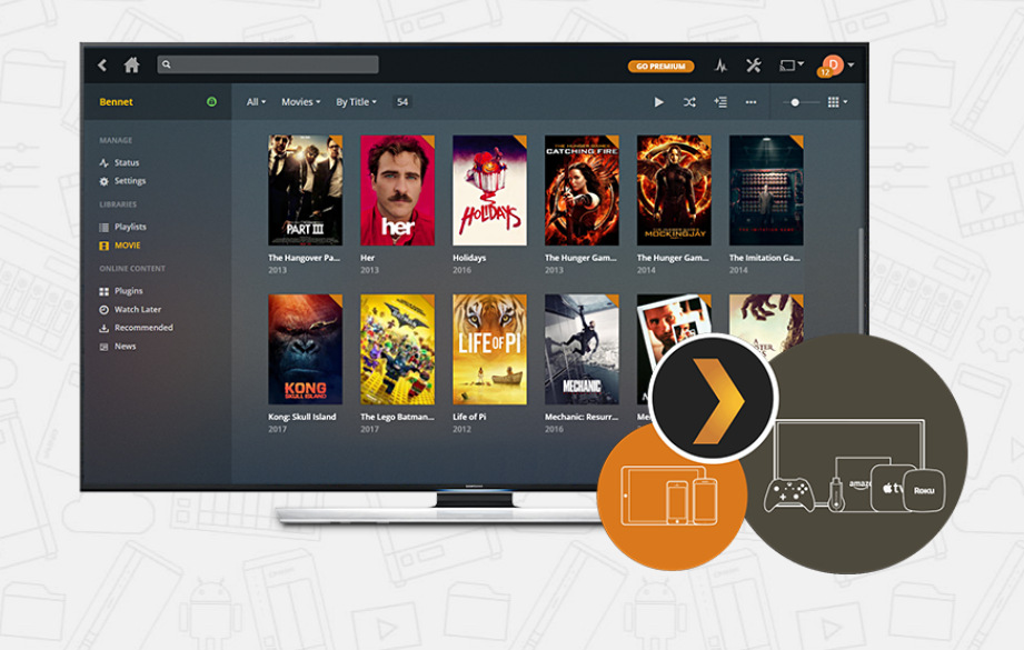 Nainstalujte si aplikaci Plex Media Server z App Center, abyste mohli streamovat multimediální soubory z NAS do mobilních zařízení a streamovacích zařízení, včetně DLNA, Roku, Amazon Fire TV a Google Chromecast.