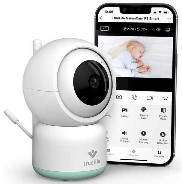 Dětská chůvička TrueLife NannyCam R3 Smart se stane moderním a spolehlivým strážcem vašeho miminka. S ní budete mít vždy dokonalý přehled o tom, co se v postýlce zrovna odehrává. Opatřena je rotační kamerou a detekuje nejen pohyb a zvuk, ale také teplotu v místnosti. Díky Wi-Fi připojení disponuje neomezeným dosahem, své dítě proto můžete sledovat odkudkoliv, dokonce i v práci.