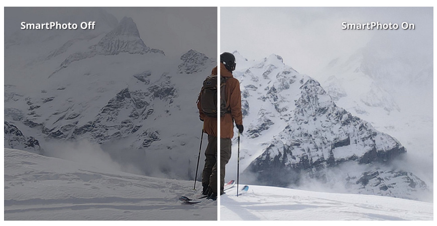 K dispozici je také režim SmartPhoto, jenž chytře dokáže identifikovat scénu a dosáhnout působivějších výsledků prostřednictvím nastavení na míru.