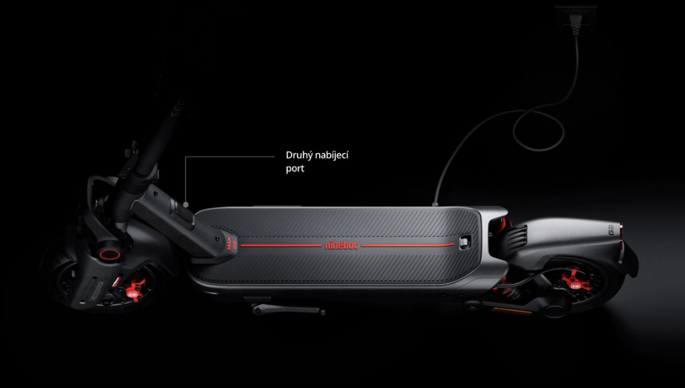 Vestavěná 3A nabíječka umožňuje jednoduché dobíjení pomocí jediného kabelu. S volitelnou rychlonabíječkou pak lze dobít koloběžku už za dvě hodiny.