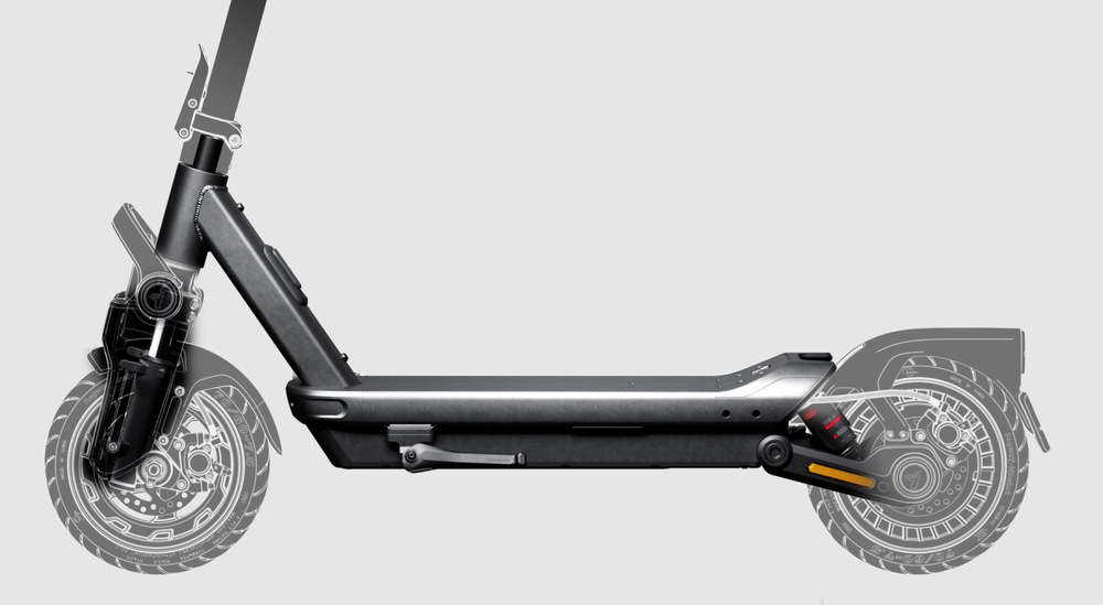 Rám z hliníkové slitiny, nosnost 130 kg a přes 500 000 testovacích cyklů odpružení – Ninebot MAX G3 E je stavěný na dlouhé roky spolehlivé jízdy v každém prostředí.