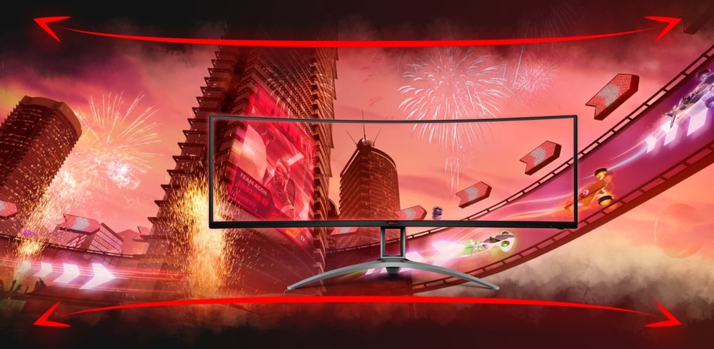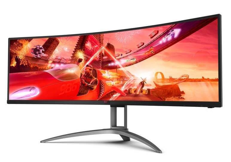 Společnost AOC přichází profesionálním zakřiveným herním monitorem, který si nebere servítky a přichází s extrémní výbavou za rozumnou cenu. Hlavní dominantou je bezrámečkový 48,8" VA panel s QHD rozlišením (3840 × 2160 px), poměrem stran 32 : 9 a jasem až 400 nitů. Zakřivení monitoru 1800R věrně kopíruje zorné pole člověka, díky čemu vás dokáže monitor více vtáhnout do centra dění. Hráči kompetitivních FPS titulů uvítají vysokou obnovovací frekvencí 144 Hz, která v kombinaci s extrémně nízkou dobou odezvy 1 ms přináší značnou výhodu v nejvíce vypjatých situacích. Perfektní barevné přesnosti je dosaženo za pomoci HDR 400.