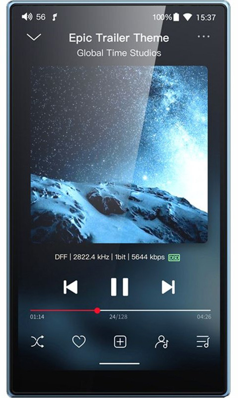 digitální přehrávač • Hi-Fi přenosný • 4,7" HD displej • interní paměť 32 GB • podpora paměťových karet • formáty AAC, DSD, FLAC, MP3, MP4, SBC, WAV • dotykový displej • internetové rádio • přehrávání videa • ekvalizér • výdrž baterie 12,5 hod. • Bluetooth • sluchátkový výstup