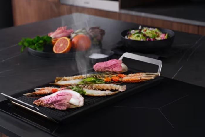 Potřebujete připravit jídlo pro více lidí najednou? S funkcí Bridge žádný problém. Tato vychytávka umožňuje propojení levých varných zón v jednu velkou plochu k vaření. Využít ji můžete jak pro větší pánve či hrnce, tak třeba pro plancha gril. Veškeré nastavení se vždy automaticky pro propojené zóny sjednotí. Aby se funkce aktivovala, musí nádoba překrývat střed obou varných zón.