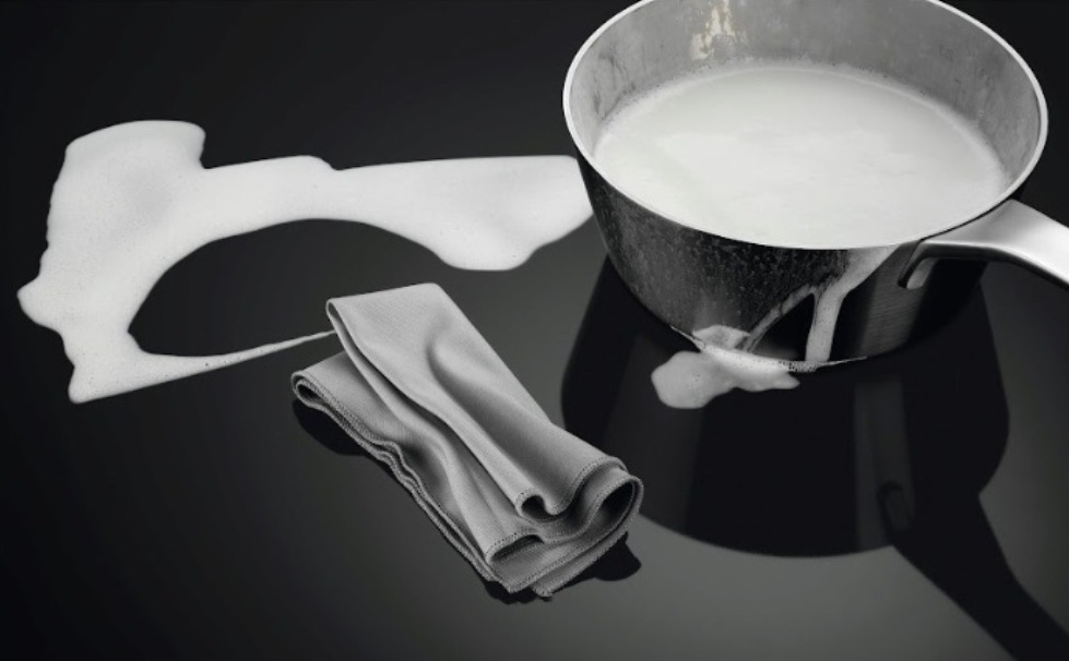 Skleněný povrch indukční desky se opravdu snadno udržuje. Teplo je dodáváno pouze pod dno nádoby, takže i když vám něco přeteče během vaření, můžete skvrnu bez obav utřít. Povrch kolem varných zón zůstává studený. K běžné údržbě vám postačí měkký hadřík a voda.