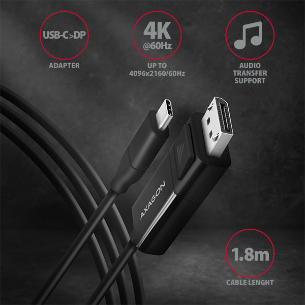 Kabel Axagon USB-C / DisplayPort, 1,8m, 4K/60Hz (RVC-DPC) černý