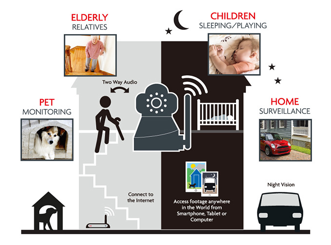 Kromě podpory Wi-Fi se standardem 802.11 b/g/n 2,4 GHz je součástí její výbavy také port pro napájení a slot pro micro SD kartu (max. 128 GB), ale záznamy umí ukládat i na FTP server. Dodávaný napájecí kabel má délku 2,5 metru a spotřeby kamery činí v maximu jen 6 Watt.