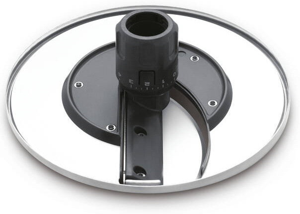 Příslušenství zahrnuje disk s nastavitelnou výškou krájení. Vyroben je z odolné tvrzené oceli. Lze si ta nastavit požadovanou výšku od 0,5 do 8 mm.