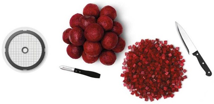 Nástavec na krájení kostiček vám výrazně urychlí přípravu pokrmu vždy. Přesné kostičky s rozměrem 12 mm vytvoří dvoustupňový proces krájení. Polévka i salát tak budou díky rovnoměrným kostičkám vypadat skvěle.