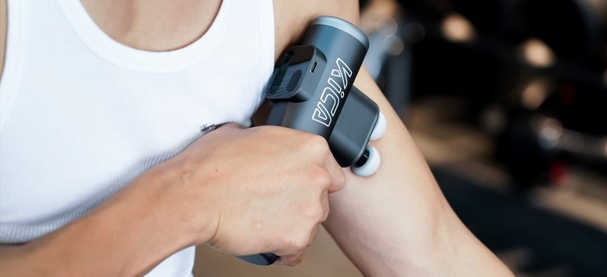 masážní pistole • příkon 8 W • pro tělo • dvouhlavá vibrační masáž • zdvih 10 mm • 3 režimy • V × Š × H: 18 × 5 × 10 cm