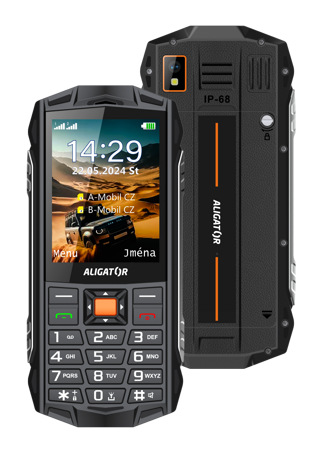 Spolehlivý parťák do každého počasí – to je Aligator R45 eXtremo! Tento odolný telefon s robustní konstrukcí a certifikací IP68 zvládne i ty nejnáročnější podmínky. Jeho velký 2,8" displej a pohodlná klávesnice zajišťují snadné ovládání i v rukavicích. Výkonná baterie s kapacitou 2 500 mAh vydrží až 52 dní v pohotovostním režimu nebo 12 hodin telefonování. Skvěle poslouží také jako powerbanka pro vaše ostatní zařízení. Integrovaná svítilna se dvěma LED diodami vás nikdy nenechá ve tmě. Díky funkcím jako SOS volání, Bluetooth, FM rádio a slot pro microSD, microSDHC a microSDXC kartu je Aligator R45 eXtremo nejen odolný, ale také praktický. Jeho stylový design s kovovými bočnicemi a černo-oranžovou barvou podtrhuje jeho robustní charakter.