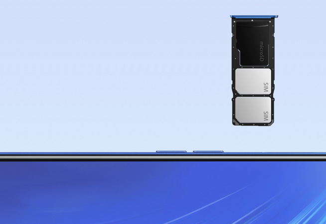 Výhodou je, že telefon podporuje vložení tří karet najednou – to znamená, že můžete využít funkce Dual SIM a přitom i rozšířit paměť prostřednictvím paměťové karty microSD až o 256 GB.
