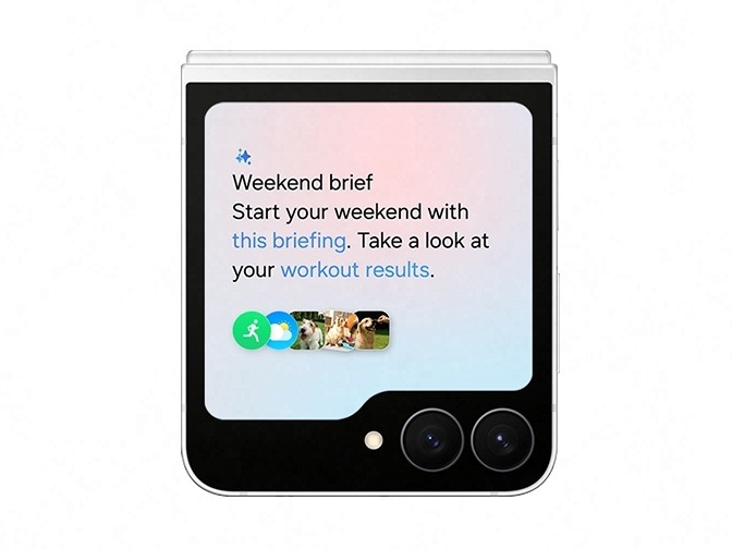 Funkce Now Brief poskytuje rychlý náhled na události, počasí nebo Energy skóre se zobrazí přímo na vnějším panelu, takže máte vše důležité neustále na očích.