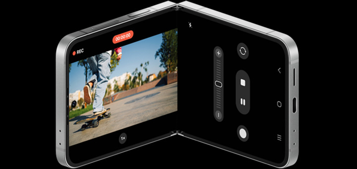 Funkce FlexCam umožňuje položit telefon a fotit bez rukou. V kombinaci s náhledem na vnějším displeji snadno zachytíte fotografii v tom nejlepším úhlu.