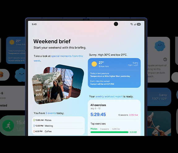 Hlavní displej díky funkci Now Brief zobrazuje personalizované informace – o počasí, vaši energii i agendě, abyste to nejdůležitější měli okamžitě na očích.