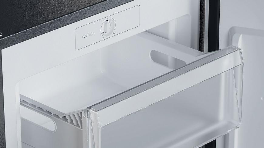 Chladicí okruh je skrytý ve stěnách mrazáku, čímž se snižuje tvorba námrazy. Chladný vzduch je v mrazáku distribuován rovnoměrně, čímž je zaručena vyšší účinnost chlazení. Díky této technologii vyžaduje mrazák manuální odmrazování pouze 1x za rok. Zásuvky jsou navíc vyrobeny tak, aby se daly snadno čistit.