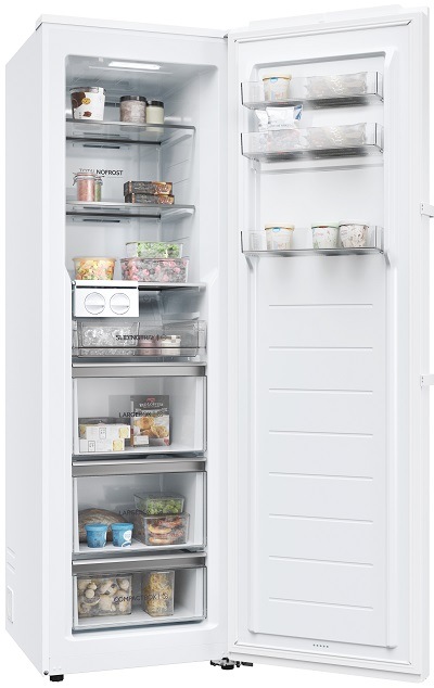 beznámrazová šuplíková mraznička • objem 301 l • energetická třída C • výška 190 cm • 20 let záruka na kompresor • Instaswitch – možnost použít jako mrazák nebo jako chladničku • Total No Frost – beznámrazová technologie • dálkové ovládání pomocí aplikace hOn • Funkce ABT PRO – antibakteriální ochrana • 3 police, 4 zásuvky • možnost změny směru otevírání dveří • hlučnost 36 dB • V × Š × H: 190 × 60 × 74,2 cm